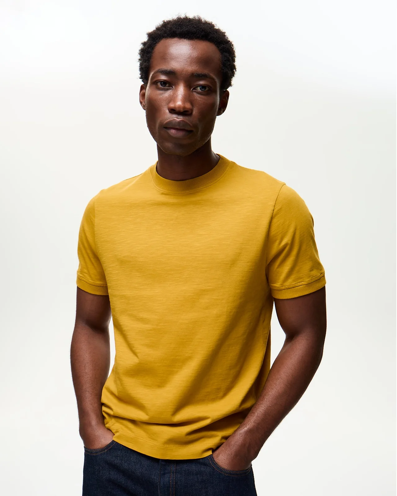 Le t-shirt qui joue avec la lumière. Harley affiche un jersey épais 180 grammes par mètre carré qui apporte structure et tenue – un tissu avec du corps et de la présence, sans jamais être rigide. Son fil flammé fait toute la différence : ce fil volontairement irrégulier crée des variations d'épaisseur dans le tissage, révélant des reflets subtils et un aspect chiné naturel. La matière vit et attrape la lumière différemment selon l'angle. Son col rond à côtes apporte une finition structurée et soignée qui tient dans le temps. Fabrication italienne, référence absolue en matière de jersey de qualité. L'alternative au t-shirt uni classique : une texture qui apporte profondeur sans motif ni imprimé. À porter seul ou sous une veste pour révéler sa richesse.